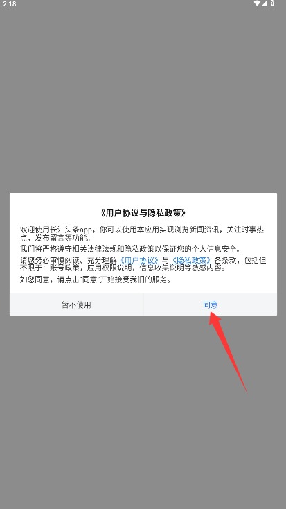 1、打开应用后仔细阅读用户协议和隐私政策,确认后点击同意按钮进入应用。