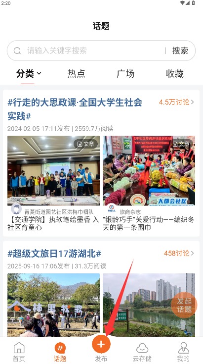 4、点击底部发布按钮可进入内容编辑页面,撰写并发布个人观点或话题讨论。