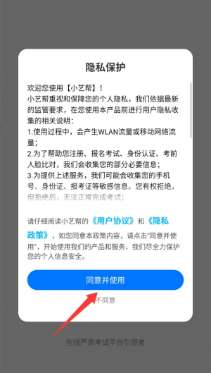 1、首次启动应用时,系统会显示用户协议和隐私政策,阅读后点击同意按钮进入主界面。