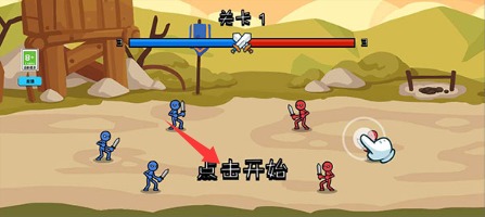4、点击技能按钮指挥你的火柴人部队攻击红色阵营,成功击败所有敌方单位即可获得胜利。