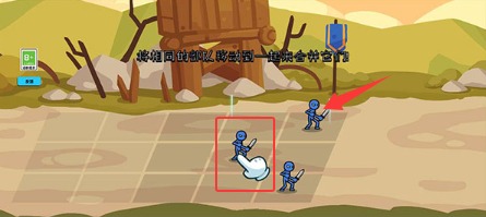 2、将两个相同等级的火柴人单位拖到一起进行合并操作,成功后会进化成更高级的作战单位。