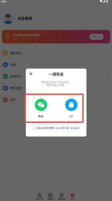 2、在登录页面选择微信或QQ授权方式,点击一键登录按钮快速完成账户验证流程。