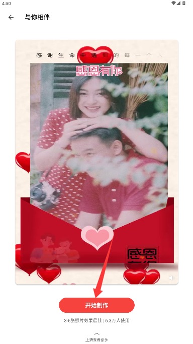 4、选择心仪的模板预览效果,确认后点击开始制作按钮即可进入视频编辑流程。