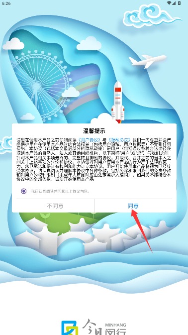 1、打开应用后仔细阅读用户协议和隐私政策,确认后点击同意按钮进入应用。