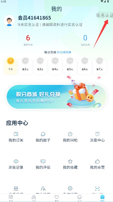 3、切换至个人中心页面,找到并点击"实名认证"功能选项进入验证方式选择界面。