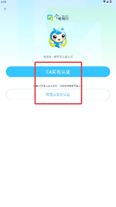 4、根据系统提示选择CA数字证书认证或阿里云实名认证其中一种方式完成验证。