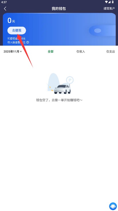 4、在钱包管理页面点击去提现功能按钮,根据系统提示完成资金提取操作流程。