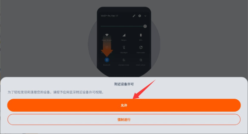2、根据提示授权"附近设备"访问权限,确保应用可搜索蓝牙设备。