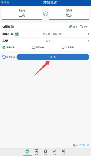 3、在查询页面输入车次或车站信息,系统将自动匹配相关的列车班次数据。
